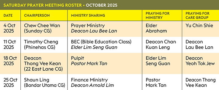 Saturday Morning Prayer Roster October 2025