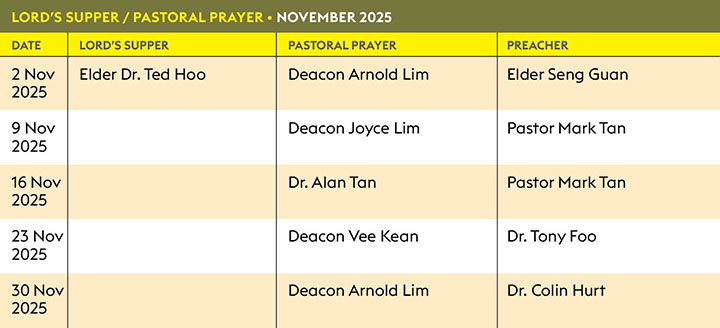 Lord's Supper Pastoral Prayer Roster November 2025