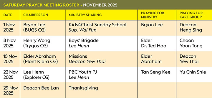 Saturday Morning Prayer Roster November 2025